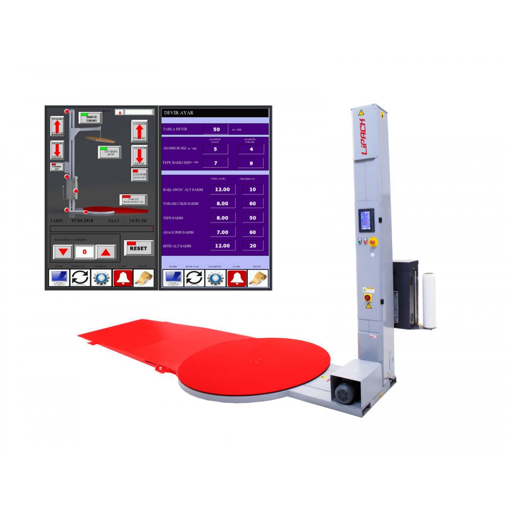 Tablalı tip streç sarma makinesidir. Tabla üzerine konulan yükün dönmesiyle sarım işlemini gerçekleştirir. Ön germe ünitesi tek motorlu ön germe teknolojisine sahiptir. %300 veya %400 sabit bir öngerme işlemi yapar. Opsiyonel olarak motorlu ön germe ile %500 germe yapabilir. Sarımın her aşamasında gerginlik ayarı panelden yapılabilir.Sizde işletmenize en uygun seçenekler için uzman satış ekibimizle iletişime geçebilirsiniz.